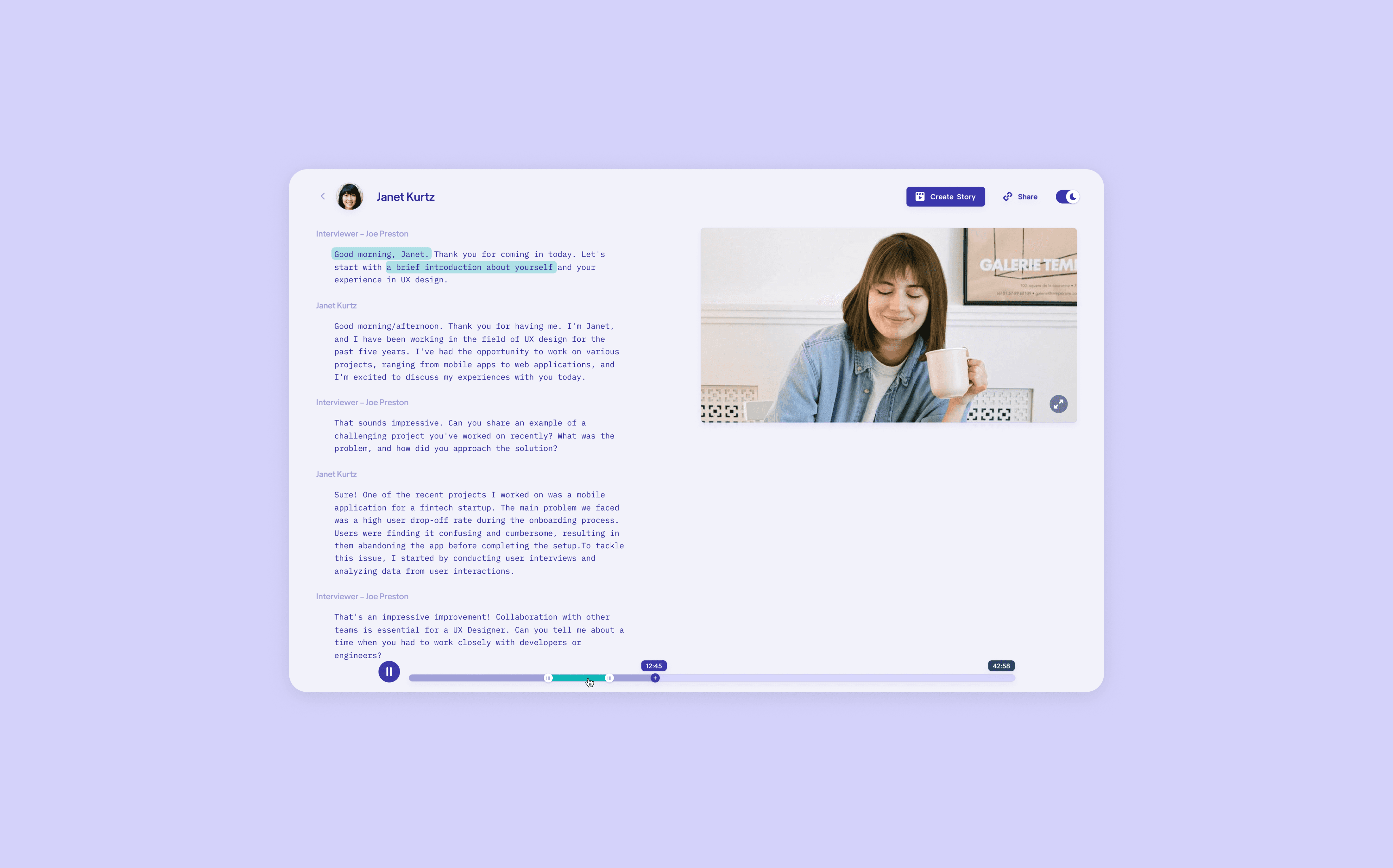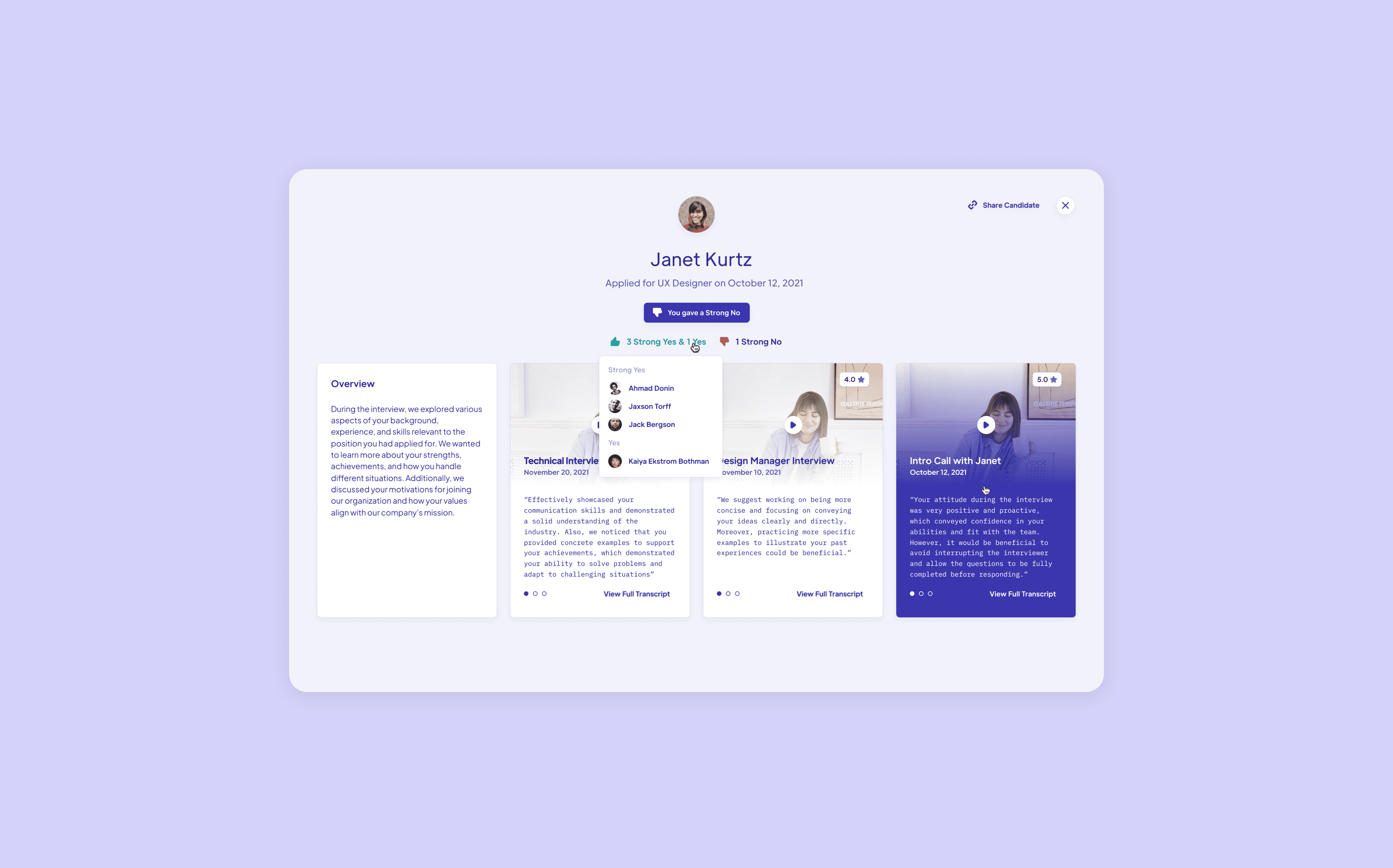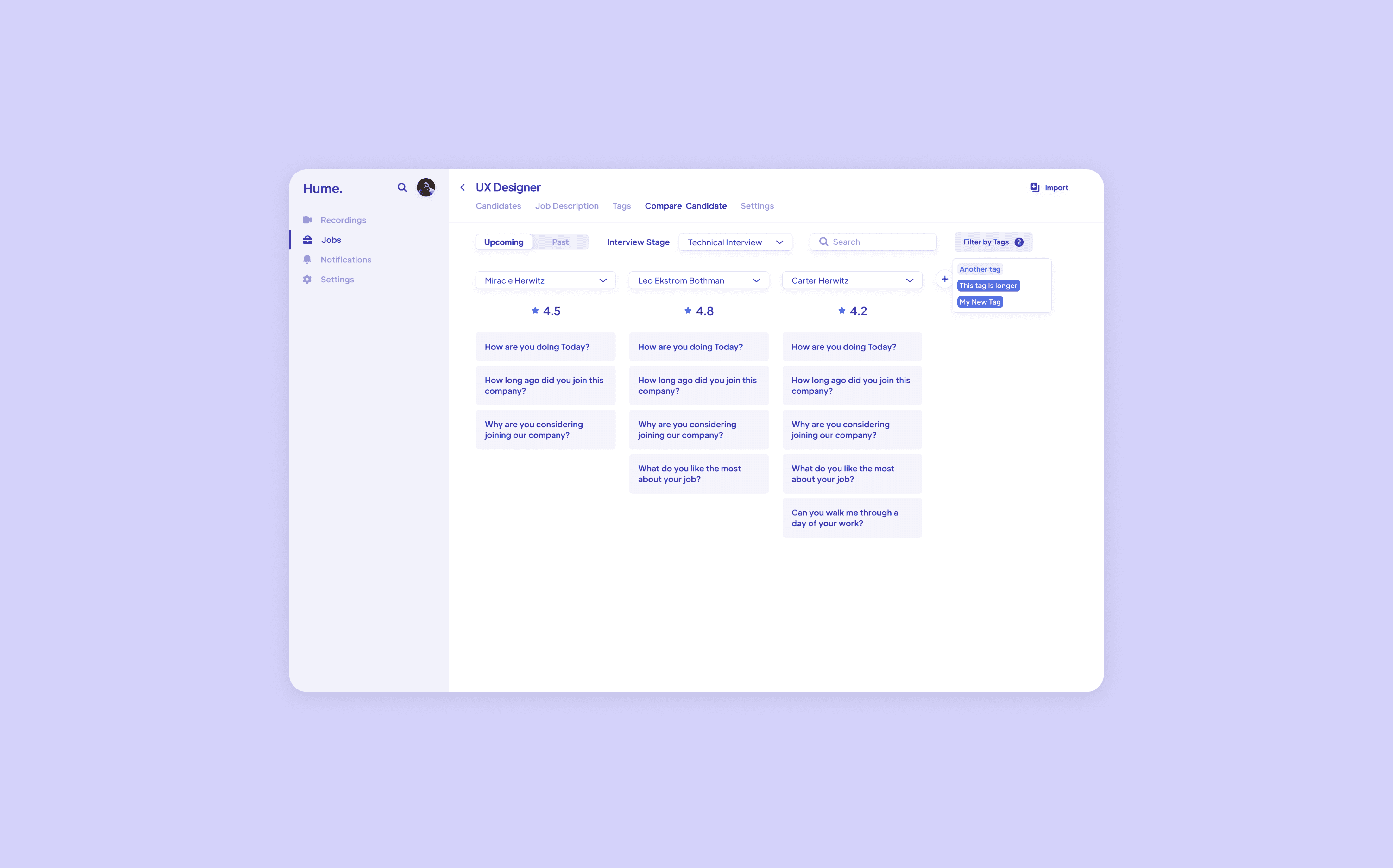 Hume is pushing forward an AI-powered companion that helps teams hire more effectively. We partnered with Hume to create an experience that facilitates the collection of conversational data, provide feedback to hiring managers, and derive actionable insights from the process. This enables managers to make better hiring decisions based on streamlined, real information.
