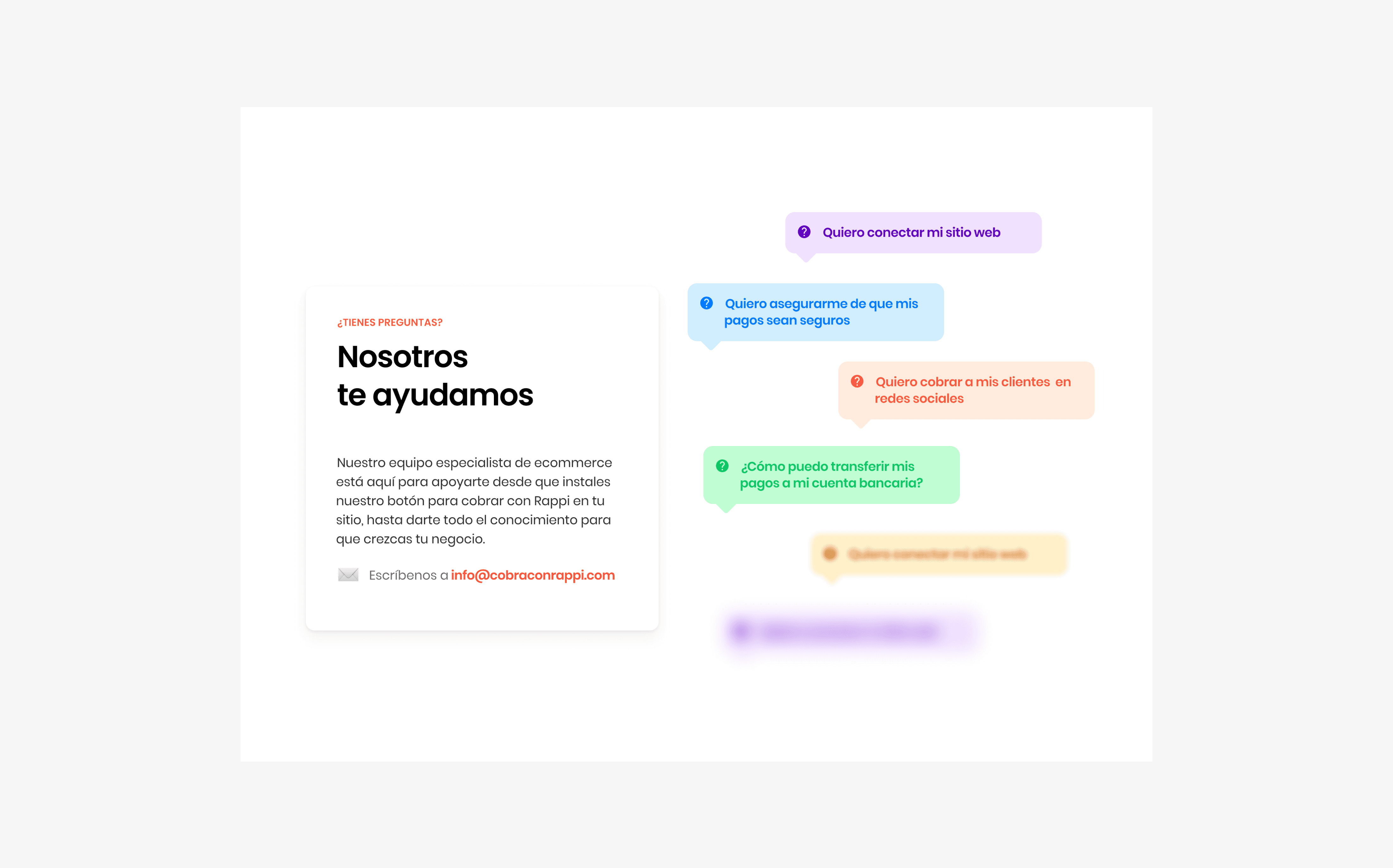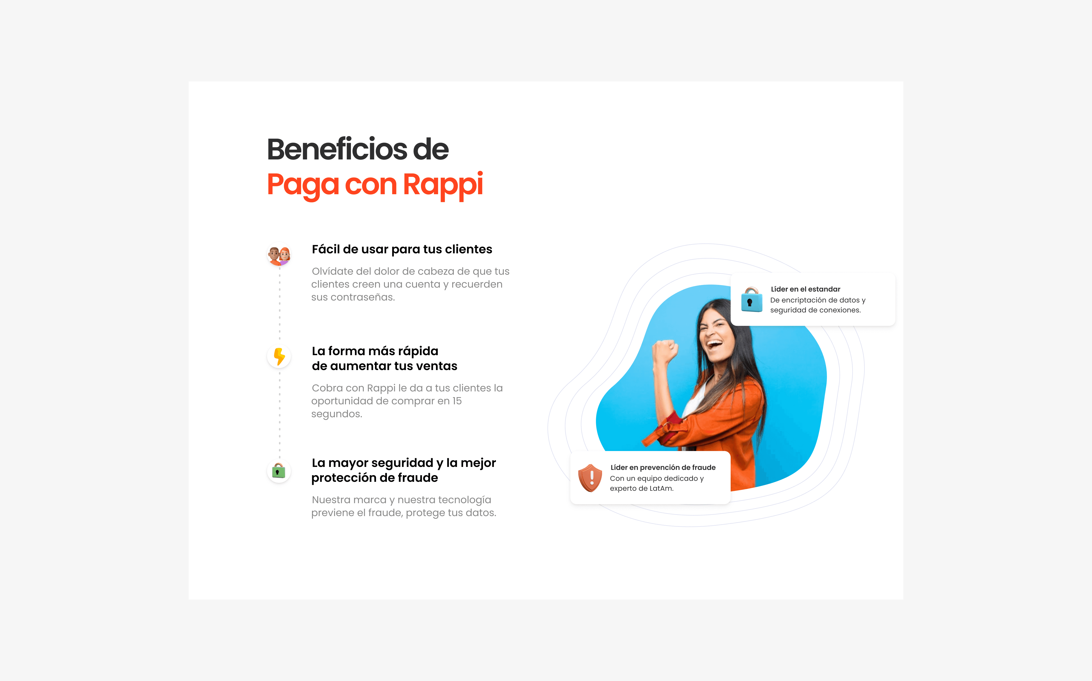 Rappi is Latin America’s leading delivery and courier service app, allowing people to send and receive food, groceries, and other goods on-demand. We designed “Paga con Rappi” to broaden their offering by enabling thousands of business across Latin America to be able to accept payments through their website and social networks.