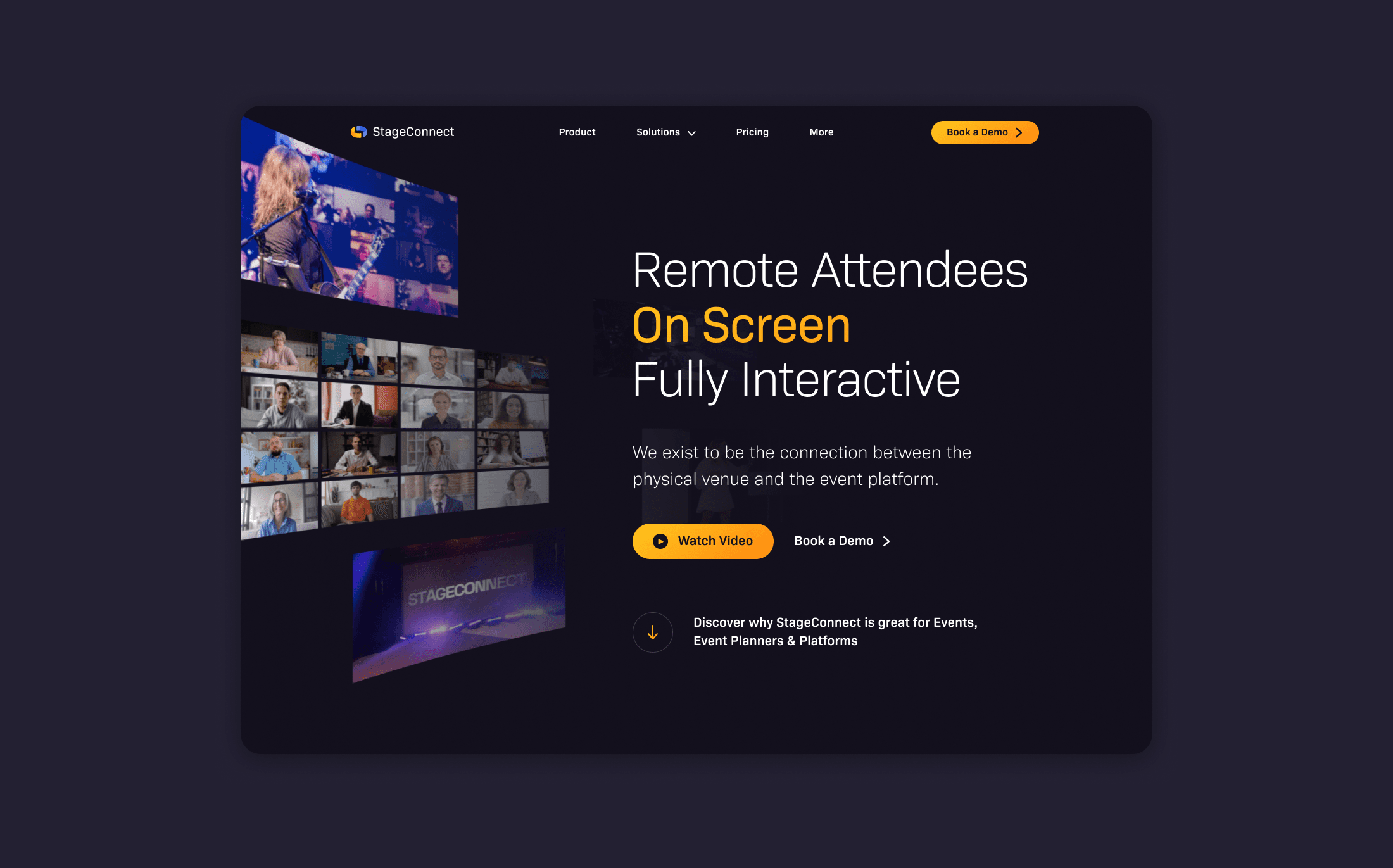 StageConnect is an events startup that connects physical venues to remote attendees through a bespoke live streaming platform. In collaboration with StageConnect, we worked on making their vision a reality by designing an enterprise-grade audience interaction software. This software allows companies of all sorts to see and actively engage with their remote audience during events, fostering a deeper connection no matter where they are.